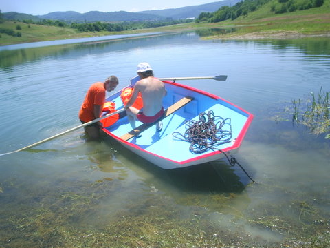 Най после лодката е на вода.