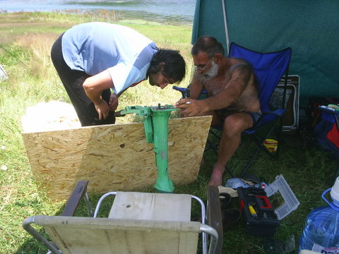 Най после лодката е на вода.