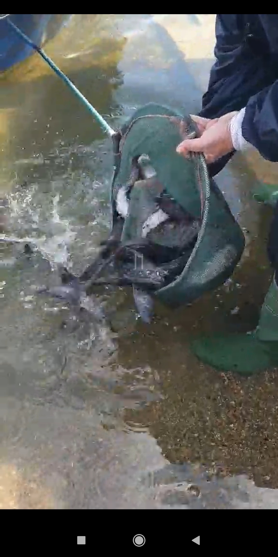За заловен с мрежа във водата,