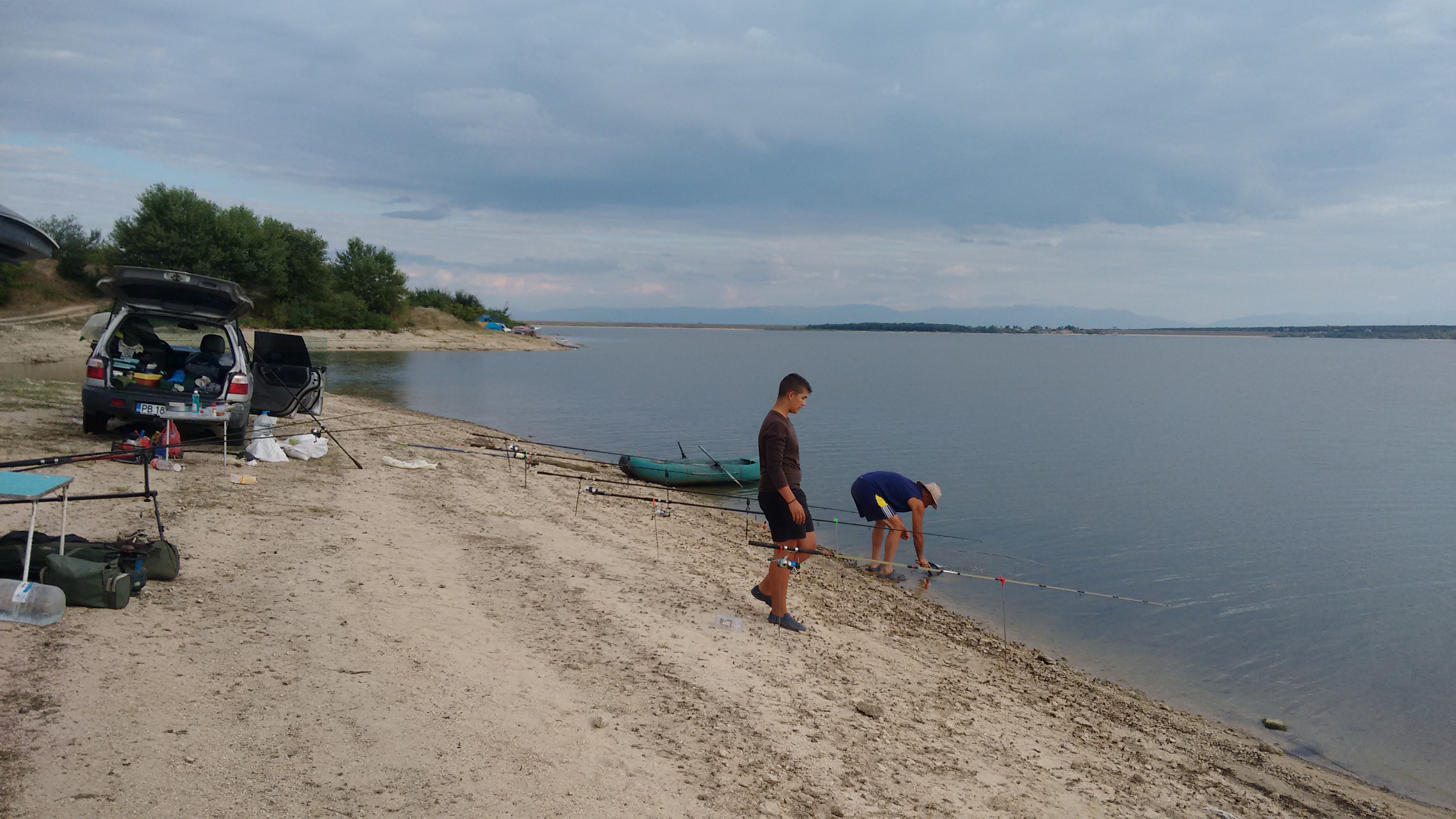 Петъка започна и продължи с постоянно прииждане на коли,бусове и камиони. Всеки в търсене на заветното място. До бой не стигна като на Беловица обаче си е пренаселено отвсякъде. Моабети-Весна и Азис имаше -очаквах по-зле да е ама само два три бивака огласяха местността и само от един стреляха -няколко пълнителя. Риболова за мен случайно или не беше приключил. До неделя нищо. Колегите се настаниха около мен и вадеха по някоя риба-от 40-50 см. Жегата -потресаваща за мен. Свикнал съм да съм на сянка винаги. Въртях чадъра и импровизирани навес ама терсене. Риболовците(рибари) трябва да сме много луд народ. Товариш,разтоварваш,купуваш,тормозиш колата ,жега до откат ,но там на гьола....