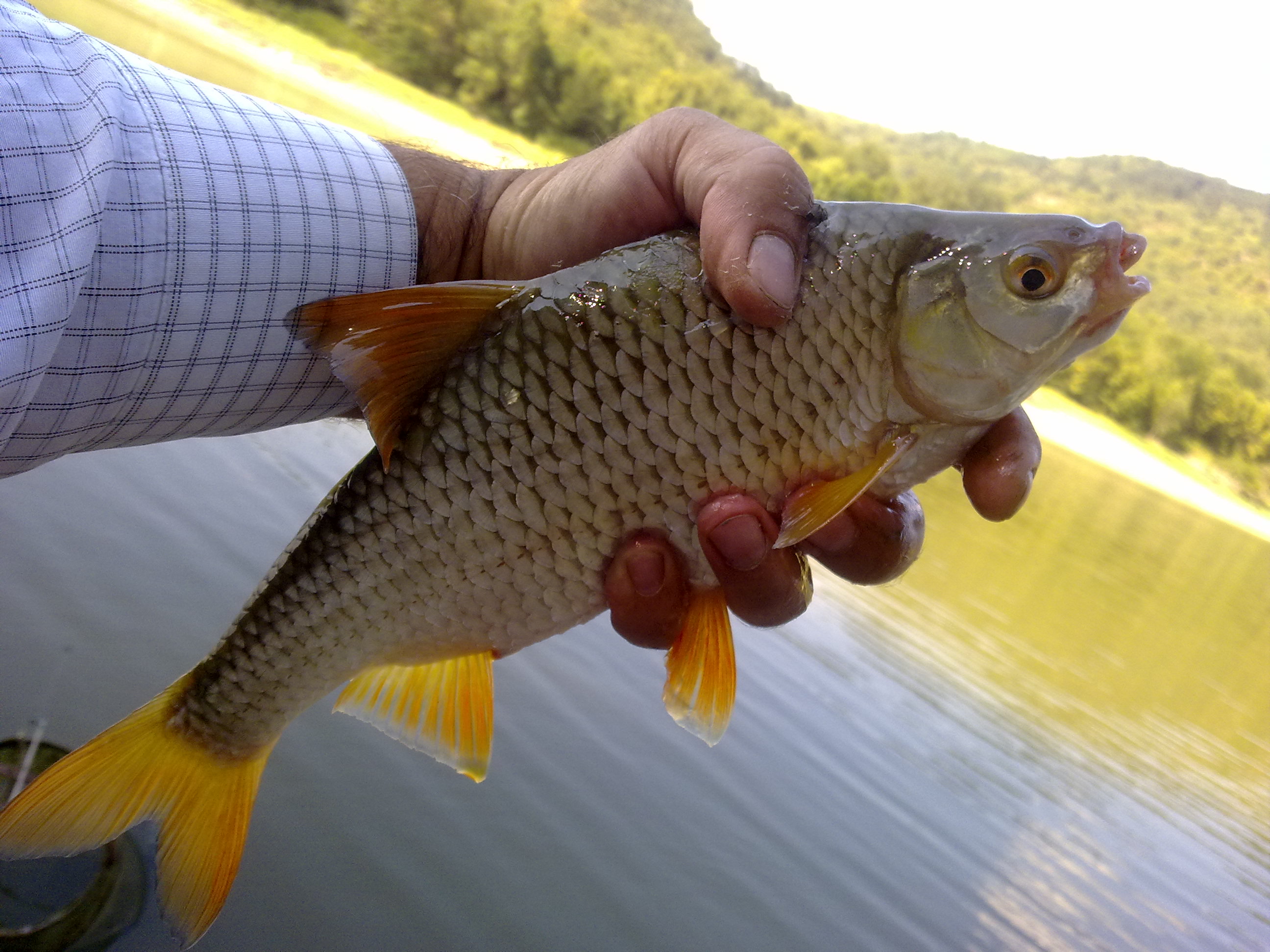 Бабушки или красноперки ,не знам точно,малко по надолу от Паметника на Любо,едри и дребни,на дълбочина около 3/4м,на царевица,като имаше и над половин кило,над 30см жапанки :fishing6: