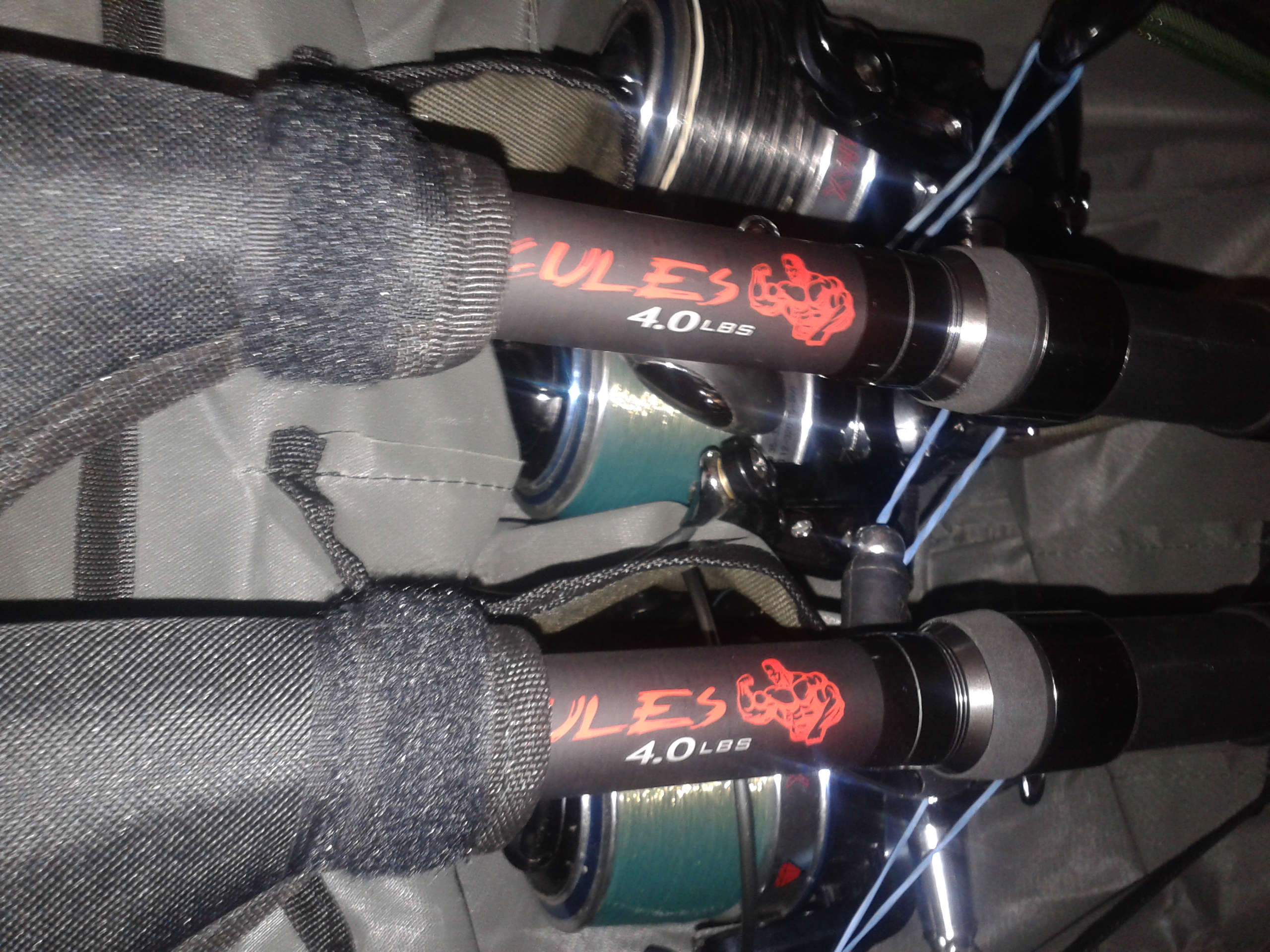 предишните пръчки бяха 3,60 на 2 части 3,5 лб. Тоурнамент,но много дълги и в колата неудобно,затова взех тия,макарите ми са и те Диамант 8000 от червените кутий,риби няма но поне ще си мерим пишките по яз. кой кво има