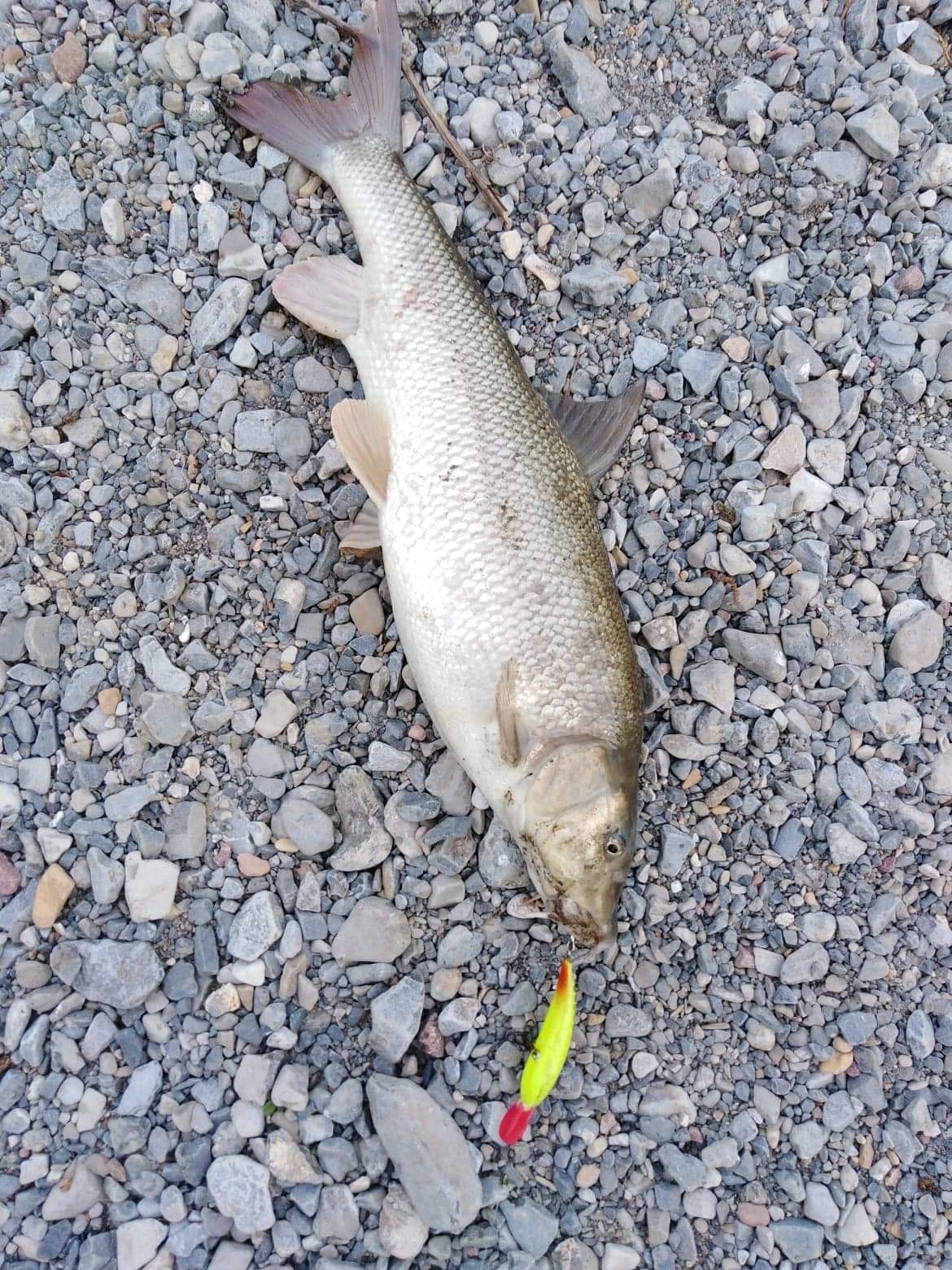Воблера е същия като от горната снимка с мряната но е бял с червена глава(т.н ред хед)