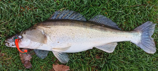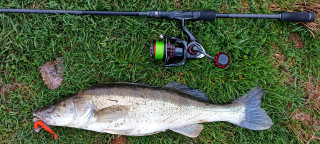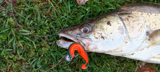 Пробвах всякакви примамки, верно не ще! Започна да се свечерява и тръгнах обратно към колата. Пътьом спирах да метна по 2-3 пъти на по-перспективните места. Отебах всякакви модерни изгъзни и заложих на изпитан бияч - 5-сантиметров сребрист воблер с оранжев корем и зелен гръб. Първо подаване м/у едни дървета и "солетката" стана на геврек.