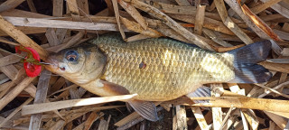 Вчера нещо се замотах и така и не стигнах до риболова. Снощи тежко гости, сутринта се наспах, после помогнах на браговерната да ликвидираме щетите от снощи, обядвах и към 1 ч. скочих в колата с намерението да преслушам околософийските басове. Пристигам на мястото - вятър, едвам се стои. Двама плувкаджии се свряли на единственото място що-годе на завет и псуват каракудите, че от сутринта нямали бутване. Застанах до тях и почнах да преравям едно място с рехави водорасли. При една от проводките усетих леко почукване, инстинктивно засякох и усетих приятно потреперване на другия край на линията. Преди да успея да го вдигна от дъното, противникът се навря в най-гъстия треволяк и не иска да излиза. Викам си - ще да е приличен басляк, но като го понапънах да излезе от тревите забелязвам, вместо очакваните зеленикави нюанси, нещо златисто. Чичаците, като видяха какво съм хванал, щяха да припаднат. На 15-тата минута от престоя ми хванах това, за което те са висяли цял ден. :lol: :lol: :lol:
