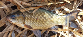 Вчера нещо се замотах и така и не стигнах до риболова. Снощи тежко гости, сутринта се наспах, после помогнах на браговерната да ликвидираме щетите от снощи, обядвах и към 1 ч. скочих в колата с намерението да преслушам околософийските басове. Пристигам на мястото - вятър, едвам се стои. Двама плувкаджии се свряли на единственото място що-годе на завет и псуват каракудите, че от сутринта нямали бутване. Застанах до тях и почнах да преравям едно място с рехави водорасли. При една от проводките усетих леко почукване, инстинктивно засякох и усетих приятно потреперване на другия край на линията. Преди да успея да го вдигна от дъното, противникът се навря в най-гъстия треволяк и не иска да излиза. Викам си - ще да е приличен басляк, но като го понапънах да излезе от тревите забелязвам, вместо очакваните зеленикави нюанси, нещо златисто. Чичаците, като видяха какво съм хванал, щяха да припаднат. На 15-тата минута от престоя ми хванах това, за което те са висяли цял ден.