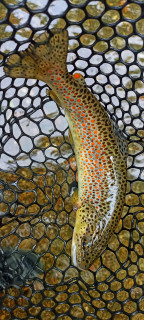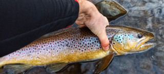 Тая година явно ще ми върви на странни улови. Реших най-после да възпосетя модерната софийска пъстървова дестинация. В 7 ч. наджапвам в барата, а пред мен вече са се строили половин автобус натокани младежи, 50:50 мухари и спинингисти, че и двама стръвари измежду тях. Реката приятна и за газене и за ходете по брега. И като се почна едно надбягване... Седнах на един път да си изям сандвича и да им дам малко преднина, че риболов тип "уединена разходка по Витошка" нещо не ми е по вкуса. Младежта дръпна напред и останах сам, само един мухар-набор се виждаше наоколо. На поредния вир виждам пъстърва да събира насекоми на повърхността. Две-три подавания в същата посока и Хексана УЛ се сгъна до дръжката. След кратка борба успях да кепна прилична балканка около 40-те санта.