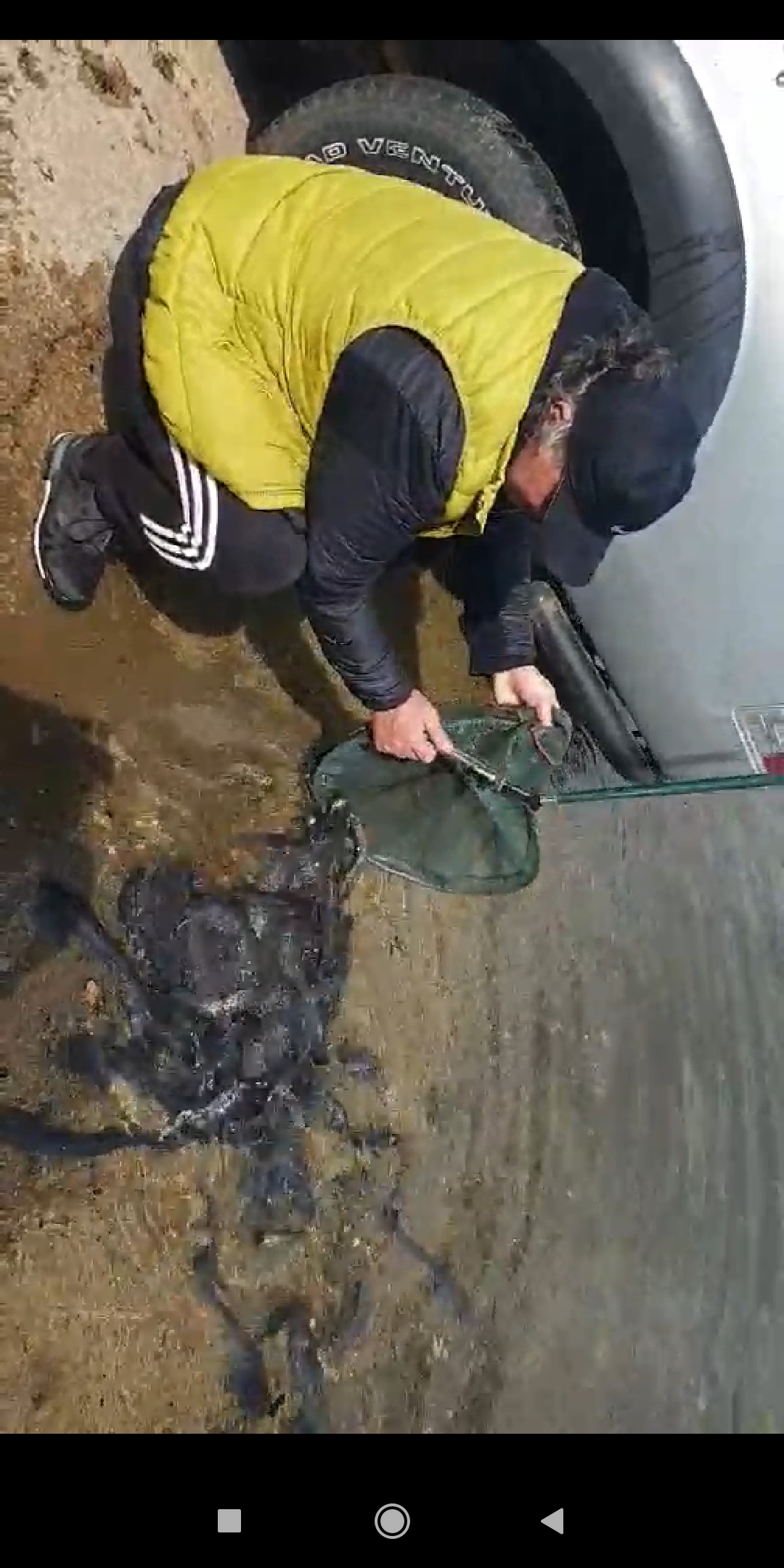 За заловен с мрежа във водата,