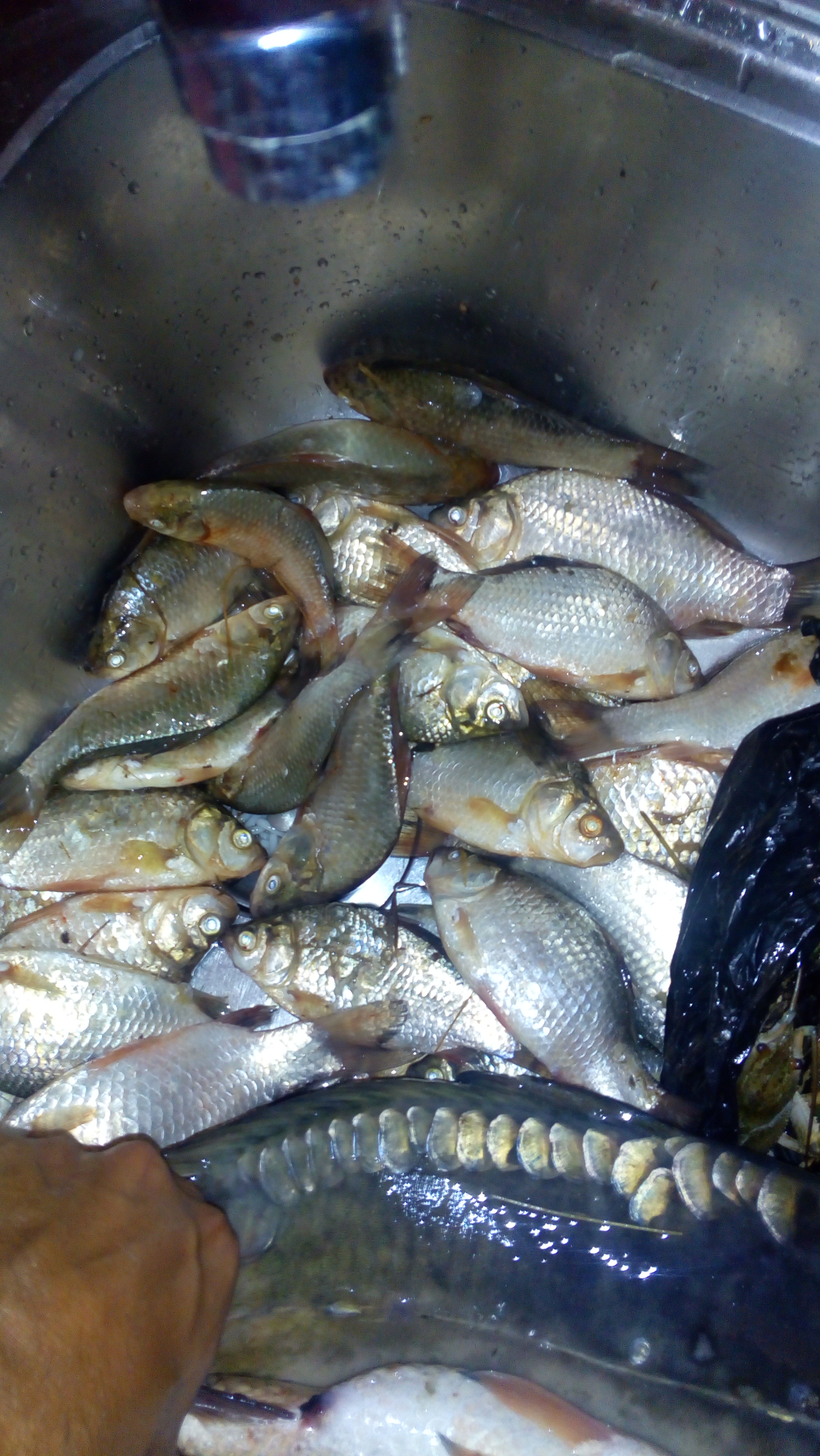 и така днескашния риболов мине .. за жалост не много успешен . Сутрента от към 5 и 30 - 6 часа до към 3 след обяяд 3 шаранчета от което едното заребителен материал и върнато 2 шаранчета по кило и половина и 2 килограма , 6 амурчета за жалост само едното около кило и двеста , много раци и много таанка