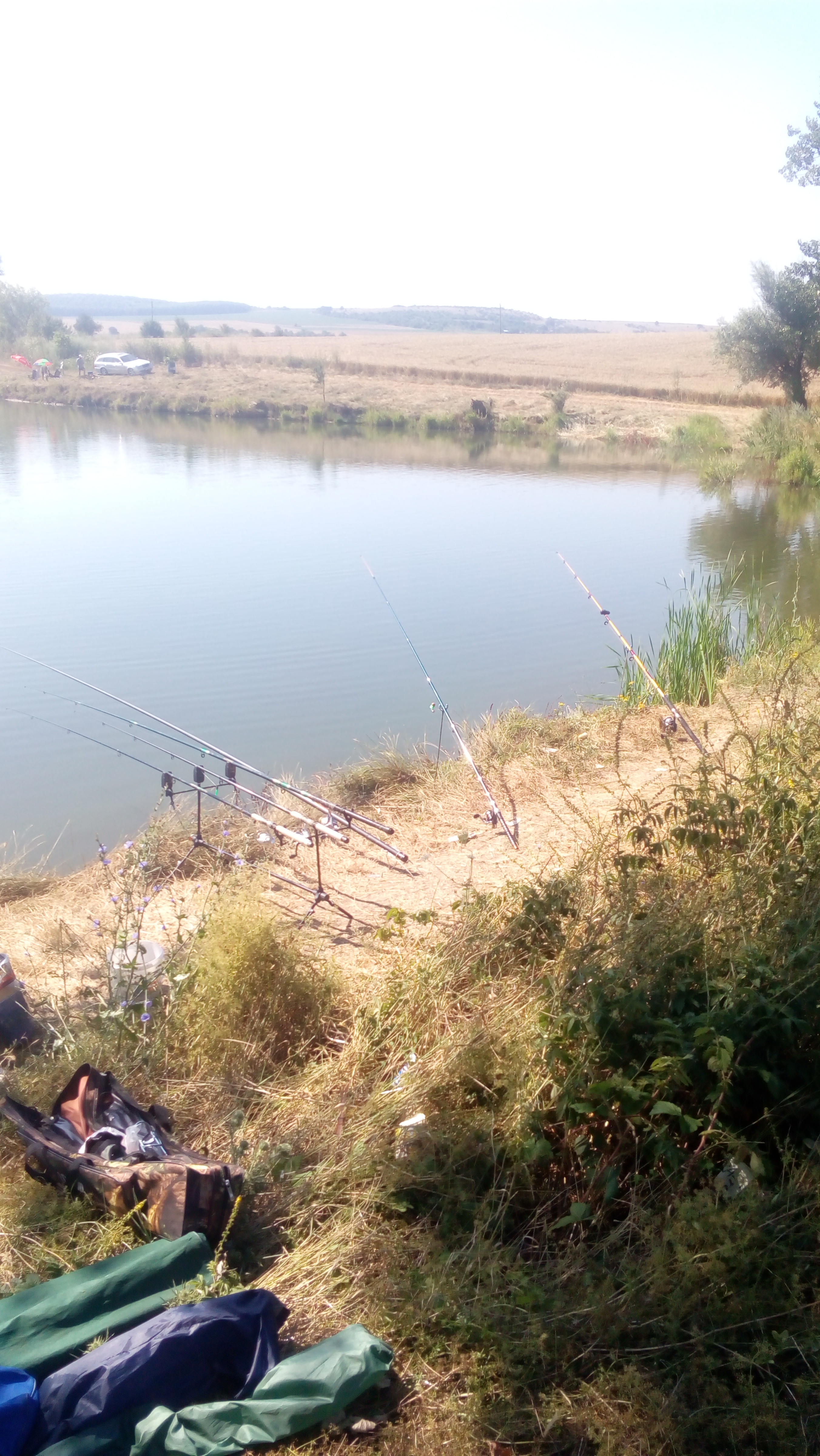 ях се настроил за малко повечко ама не бяхме единстените рибари с такъв удар .. от всичките колеги на язовира имаше само един който беше изкарал около 4 кг шаран , амура почти всичкия по живарницете един калибър около кило и двеста