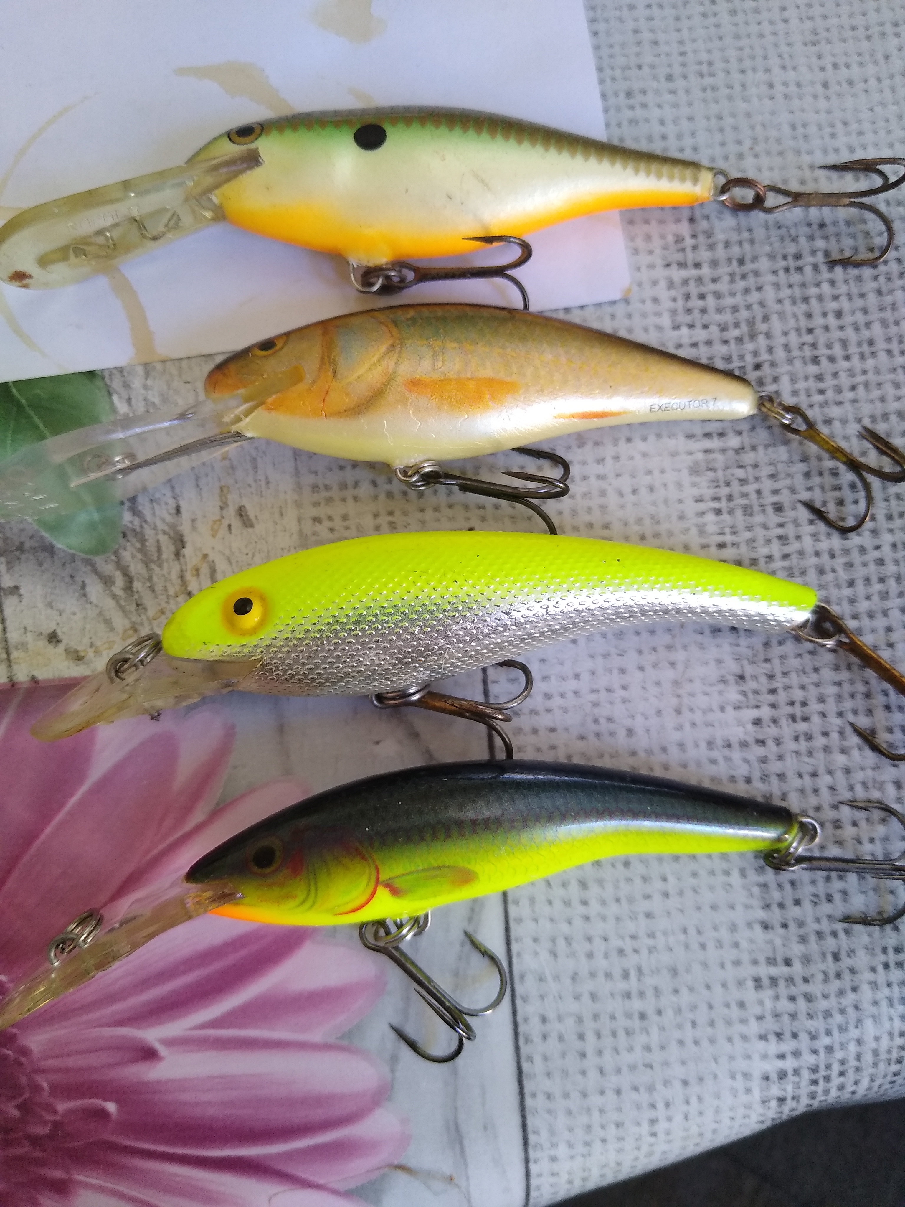 Ей тези състезавах два дена,това са ми най-ловящите воблери!Шадрапа би с 18 на 14 и на другия ден пак би,хвана сома!И двата нямат намиране и затова съм се запасил,горния е легендарния SSH а другия е SF Силвър Фойл!Иначе на дълбоката 7-ка хванах 80-ката която се откачи след 3часа битка и вкарване многократно на цялата въдица у водата,после всичко ме болеше!