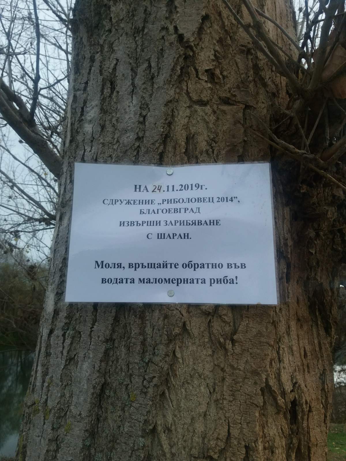 На 24.11.2019 г. Сдружение „Риболовец – 2014″ – гр. Благоевград извършиха зарибяване на водоем „Бистрака“ и разливите на река Струма до този водоем, между втори и трети бараж, общ. Благоевград. По време на акцията във водите на водоемите бяха пуснати 150 кг. риба от вида шаран. Зарибителният материал е предоставен от сдружението със средствата постъпили от разпространяване на билети за любителски риболов.