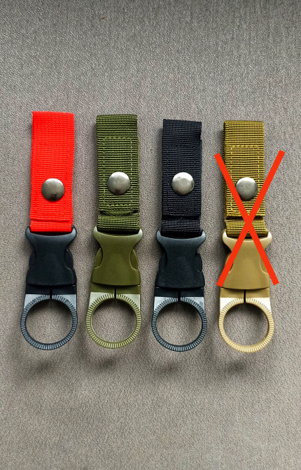 Продавам държач / карабинер за закачване на бутилка вода или други напитки. Подходящ за всички стандартни бутилки с капачка на винт. Удобно прикрепяне с велкро лента и копче тик-так към колан, раница и рибарски елек. Наличен в черно, милитари зелено, каки и черно/червено.