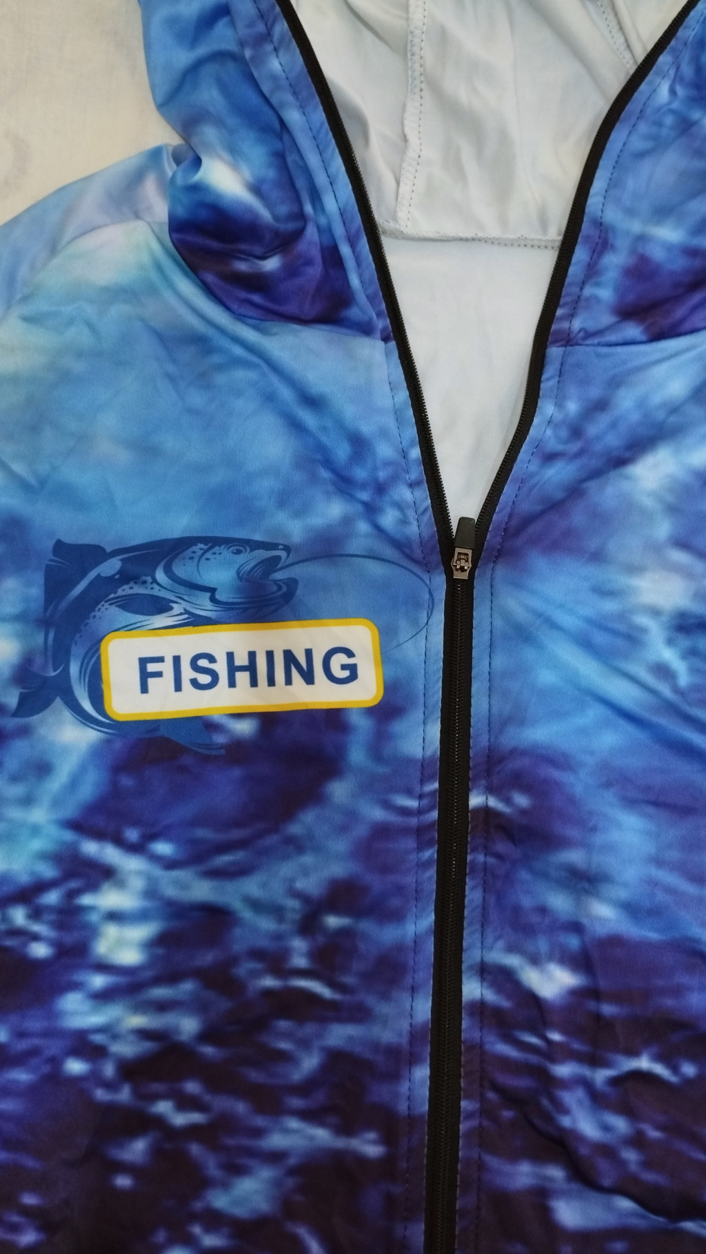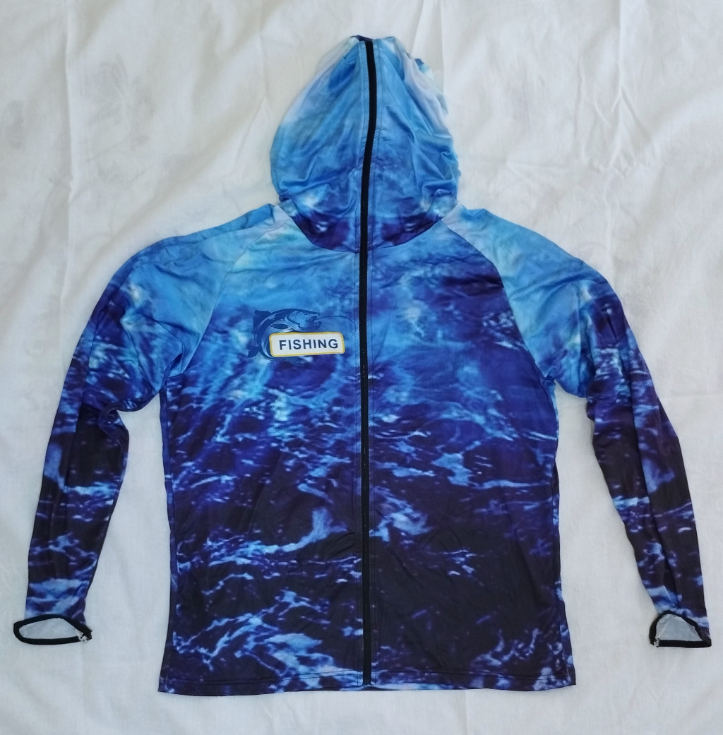 Нова UV блуза с качулка и цип скриващ цялото лице, размер L. Нова, не е носена, само съм отрязал отвора за китката, защото не можеше да вкарам ръцете си. Цена 14 евро. Намира се в Пловдив, за страната може да пътува по Еконт.
