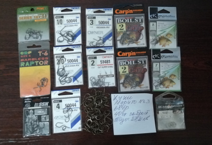 Различни марки и номера куки за шаран.