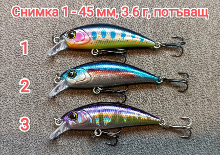 Продавам няколко вида воблери за пъстърва, кефал и костур. Дължина 45-50 мм, тежат 3.5-5.0 г. Газят около 50-90 см. Страхотна изработка, отличен кастинг и стабилна игра. Подходящи за реки и area риболов.
