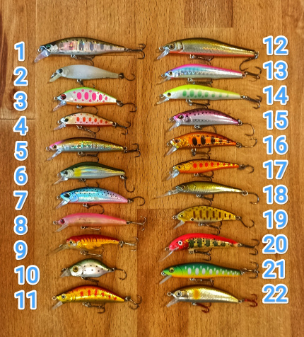 Продавам няколко вида воблери за пъстърва, кефал и костур. Дължина 33-70 мм, тежат 3-5 г. Газят около 50-90 см. Подходящи за реки и area риболов.