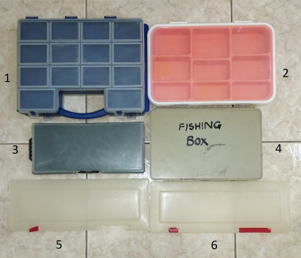 - Номер 5 и 6 са с приблизителни размери 30 х 11 см (на едната и липсва едната закопчалка и двете подвижни преградки вътре)