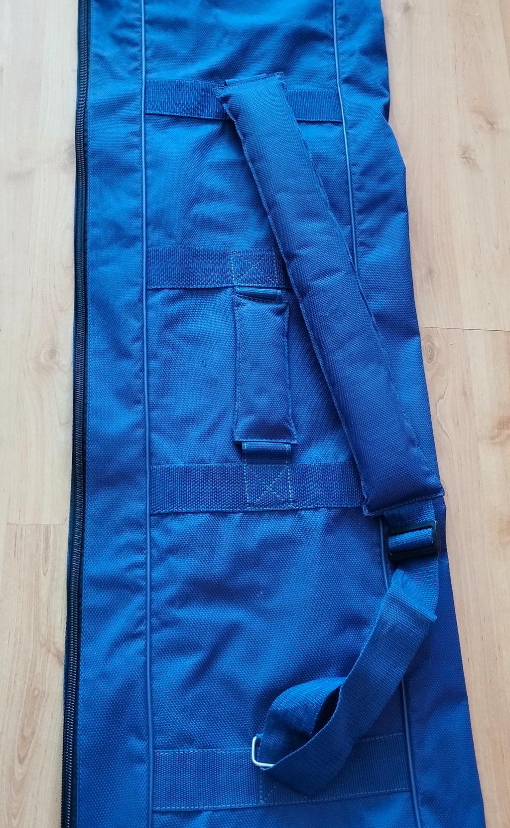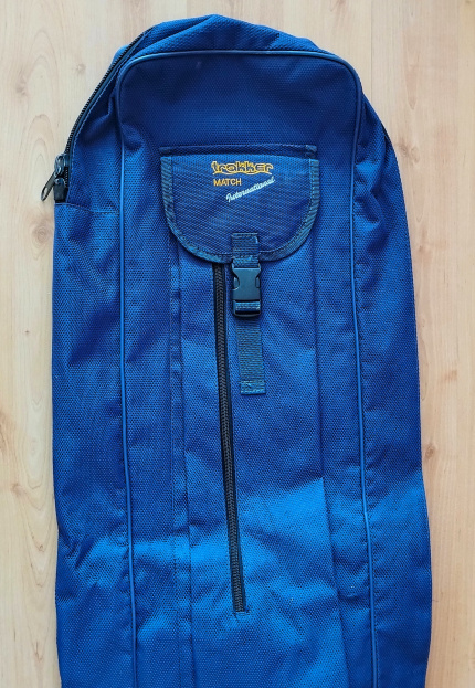 Голям английски калъф за няколко мачови и фидер пръчки с макари, дължина около 175-180 см. От вътре е с ластични прегради, в които може да се поберат няколко пръта. От вън има два джоба с цип и закопчалка, като единият е с дължина около 154 см, в който може също да се побере прът, но най-вероятно е за колове, стойки, триноги, чадъри или други аксесоари. Вторият е с дължина около 84 см и пак може да се побират дълги аксесоари. Платът е промазан-водонепропусклив. От зад има дълга удобна и мека презрамка и мека дръжка за носене. Калъфът е в много добро състояние, малко използван, единствено от долу на кожата има следи от употреба, но от вътре е с двойно дъно и забележките, които се виждат са само повърхностни, също и единият цип е без дръжката на машинката, но и така си работи без проблем. Купуван е от Англия. Намира се в Пловдив, за страната може да пътува по Еконт. Тел. 0898983005.