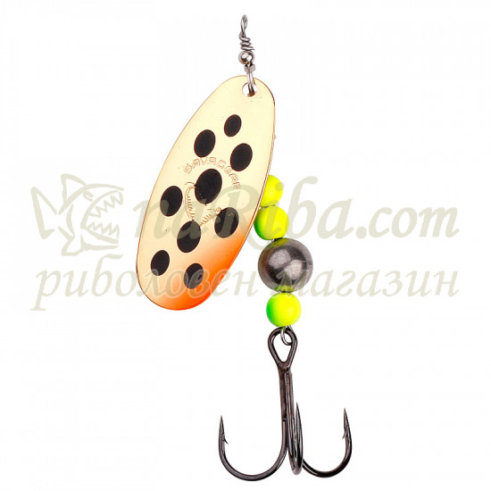 Перфектно изработената лопатка от неръждаема стомана е в съвършена форма, постигната след хиляди часове на тестове - за да се даде перфектено въртене както в реки и потоци, така и в спокойни води. Въртенето на примамката започва в момента, в който тя докосне водата. Всяка блесна е предварително изпробвана и е уникално като бижу, изработено от висококачествени компоненти и оборудвано със специално подбрани японски тройни куки. Отличен за пъстърва, сьомга и повечето хищници.